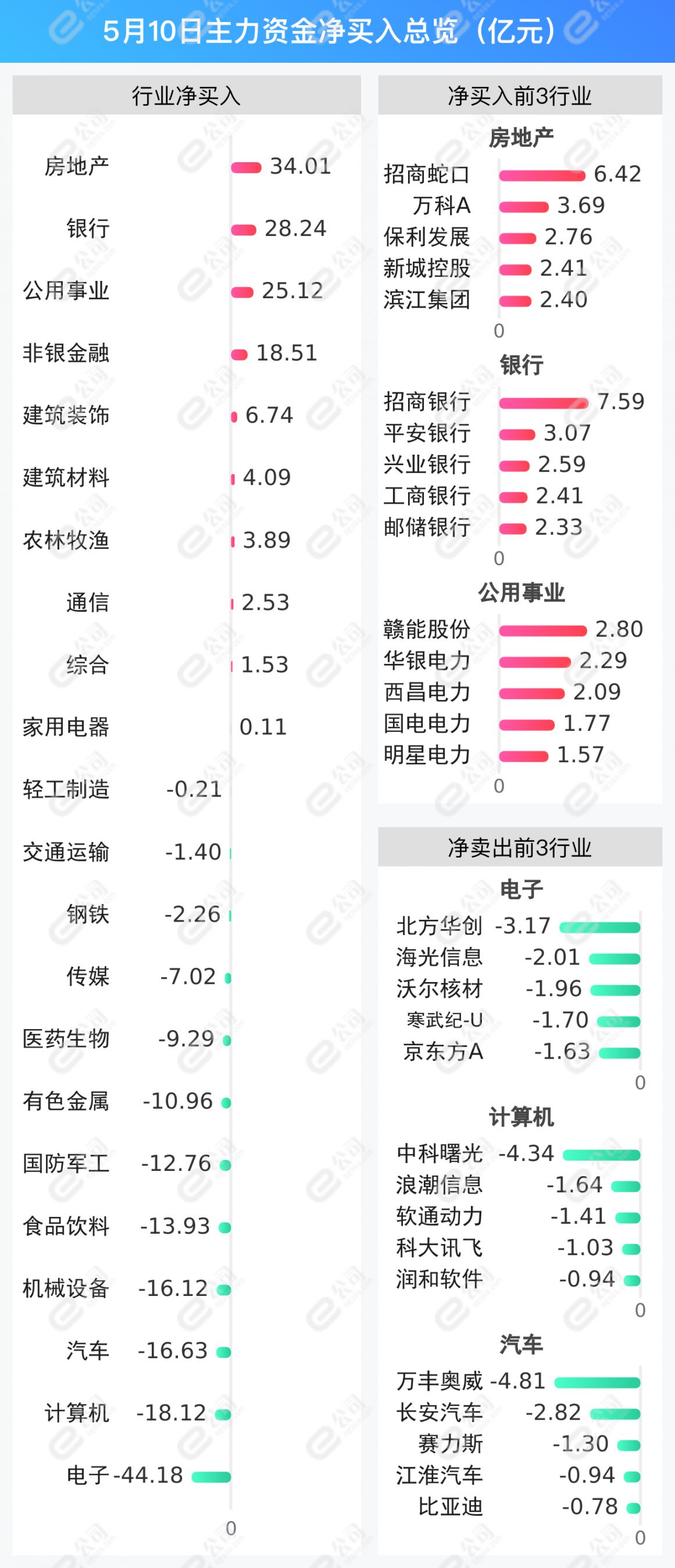 从行业层面看,房地产、银行、公用事业获主力资金净买入金额居前,分别为34.01亿元、28.24亿元、25.12亿元。