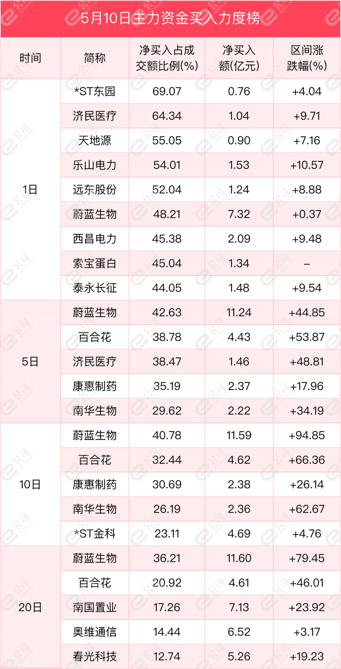 从主力资金买卖力度来看,*ST东园、济民医疗、天地源获主力资金大力买入,净买入额占当日成交额比例分别为69.07%、64.34%、55.05%,净买入额分别为0.76亿元、1.04亿元、0.9亿元。