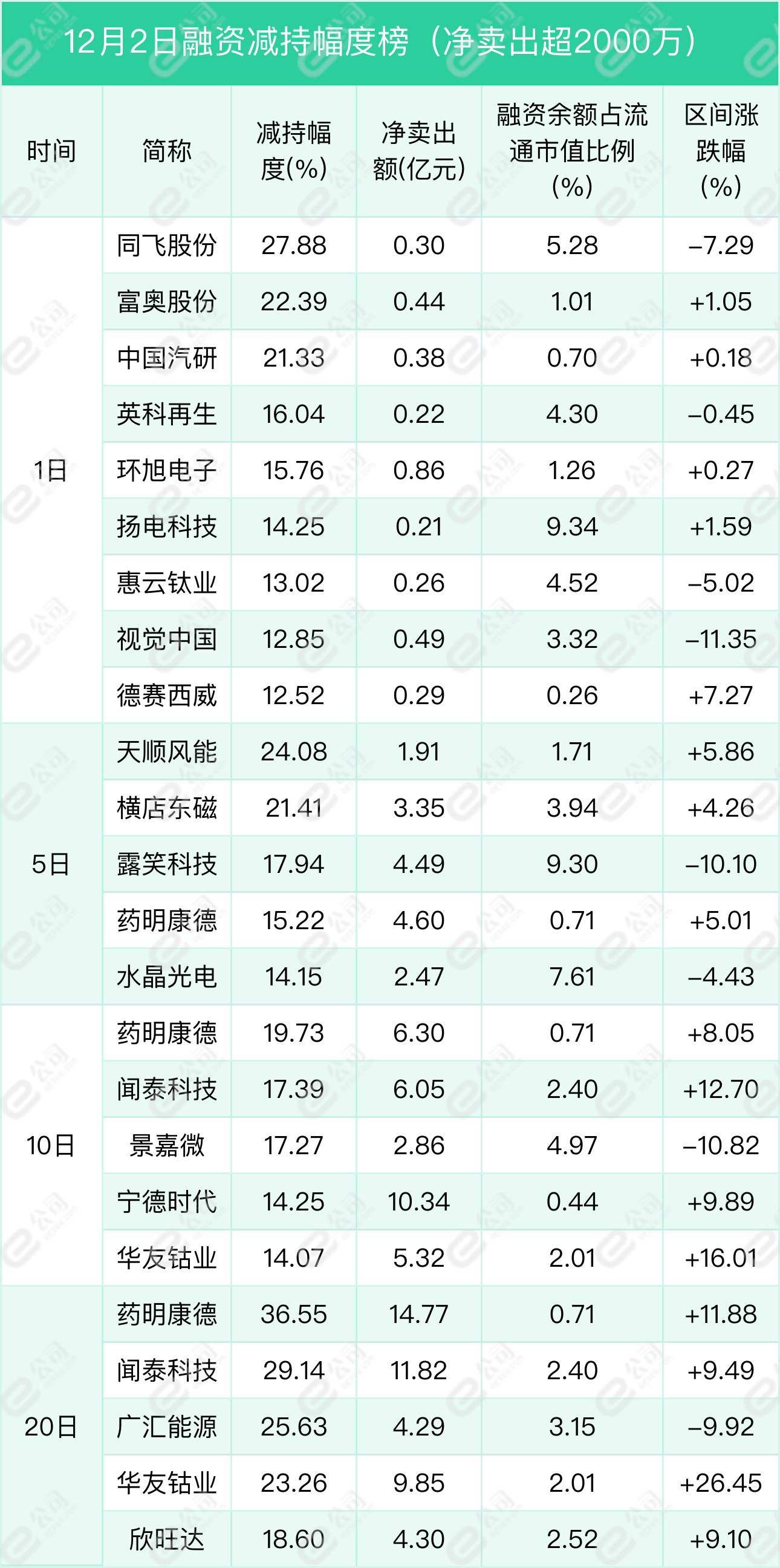 e公司数据统计显示,截至12月2日,融资持仓市值前五行业为医药生物、电子、非银金融、化工、有色金属,占持仓总市值42.56%。