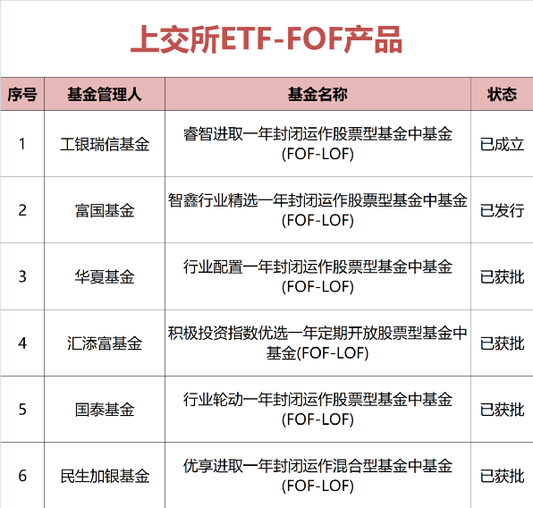 2021年10月,富国、华夏、工银瑞信、汇添富、民生加银、国泰等多家基金管理人上报的首批ETF-FOF获批。FOF的运作模式结合ETF基金成熟透明的运作机制,是符合投资者需求的产品类型,是FOF细分领域又一次创新。