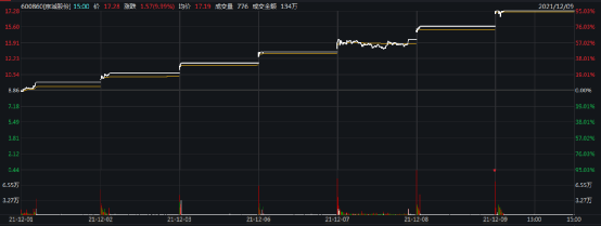事实上,过去半个多月,京城股份股价持续上涨,一度从6元左右的价格上扬至17元以上。京城股份此轮上涨在11月19日启动,截至12月9日,在短短15天累计上涨168.32%。