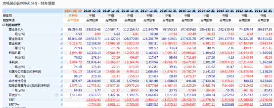 2021年4月初,京城股份撤销退市风险警示,公司A股股票简称由“*ST京城”变更为“京城股份”,2021年前三季度净利润再次亏损。