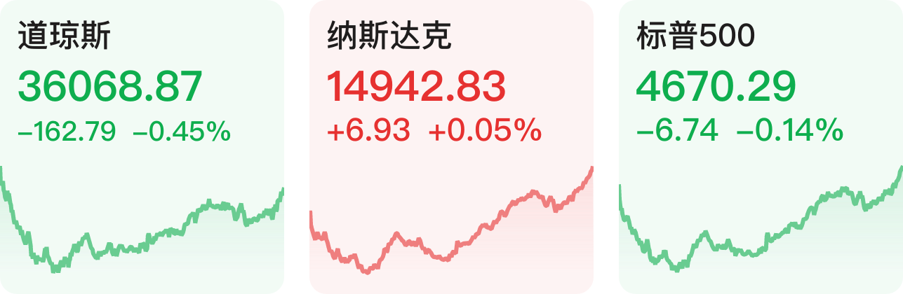 美股尾盘拉升,三大指数收盘涨跌不一,纳指收涨0.05%,盘初一度重挫2.7%;道指跌0.45%,标普500指数跌0.14%。抗疫概念股集体上涨,Moderna涨超9%,诺瓦瓦克斯医药涨超6%。