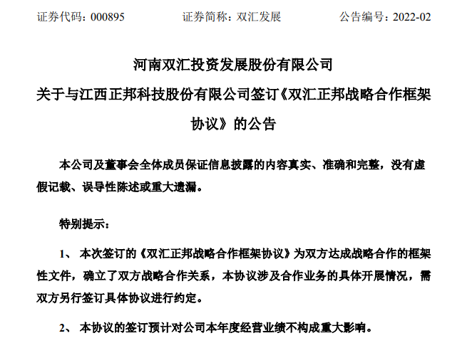 当晚,正邦股份也同期披露的上述合作内容。