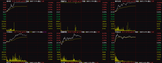 概念股方面,多只猪肉和鸡肉概念股大涨。得利斯、顺鑫农业、傲农生物等多股涨停,益客食品、晓鸣股份等多股大涨。