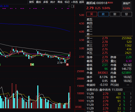 可能受到上述消息影响,A股上市公司嘉凯城上午盘中一度涨停。