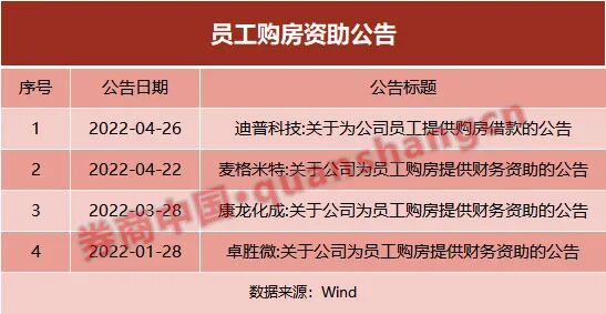 券商中国记者梳理发现,除了迪普科技之外,今年以来还有多家上市公司也发布了类似的公告。麦格米特将为员工购房提供不超1000万元的免息贷款;康龙化成将为部分员工提供最长五年的免息购房借款资助,员工个人借款额度不超过60万元;八方股份称,公司计划使用部分自有资金为员工购房提供借款,用于员工购房借款资金池总额不超过3000万元。