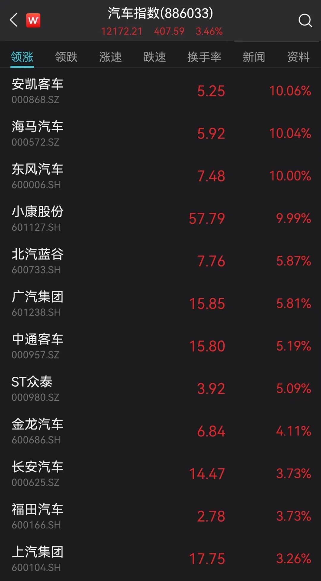 除此之外,工信部宣布,正式开展新一轮新能源汽车下乡活动。同时“乘用车购置税减征”政策细则发布,新能源汽车板块在一系列的政策利好之下,仍然是反弹先锋。安凯.客车直线封板,海马汽车、东风汽车此前涨停,华为概念新能车小康股份涨停,北汽.蓝谷涨逾5%。