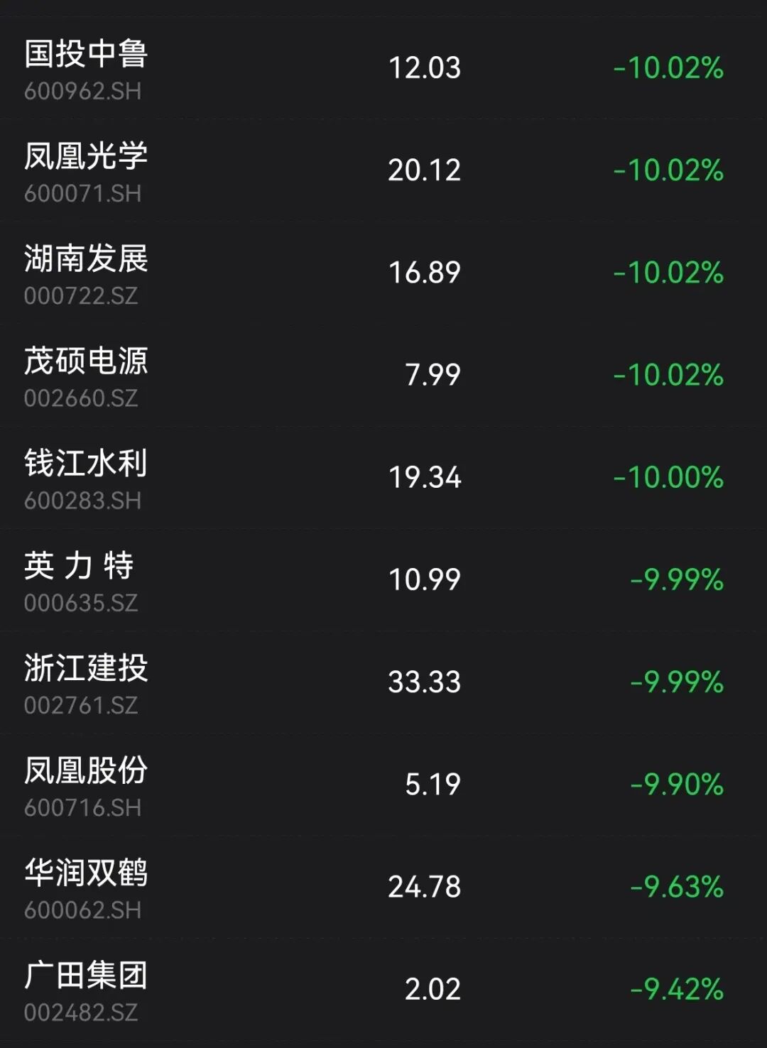前期游资活跃的热门股浙江建投、湖南发展、英力特等再度跌停。