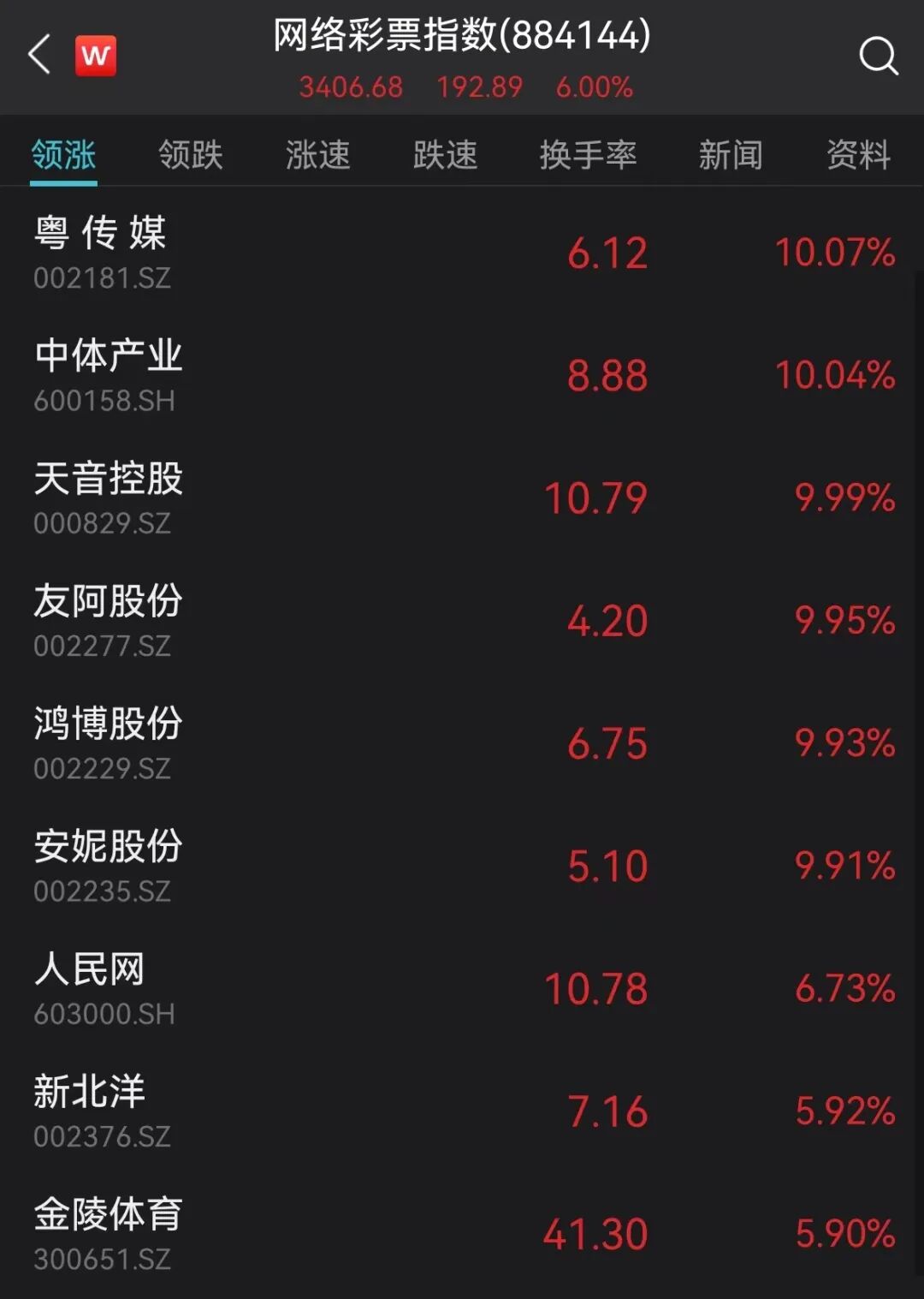 6月1日早盘,博彩概念大涨,中体产业、粤传媒、鸿博股份、安妮股份等均涨停,金陵体育涨近6%。