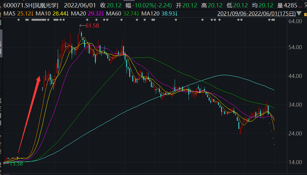 受此消息影响,凤凰光学在从2021年9月30日至10月21日,凤凰光学股价连续11个交易日涨停。之间,连续11个涨停板,股价一度上涨超400%。