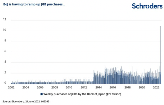 日本央行疯狂地买入日本国债,相当于向市场投放了大量货币,而在美联储、欧洲央行启动加息浪潮之下,日本央行的逆势而为,正在加剧日元的贬值压力。