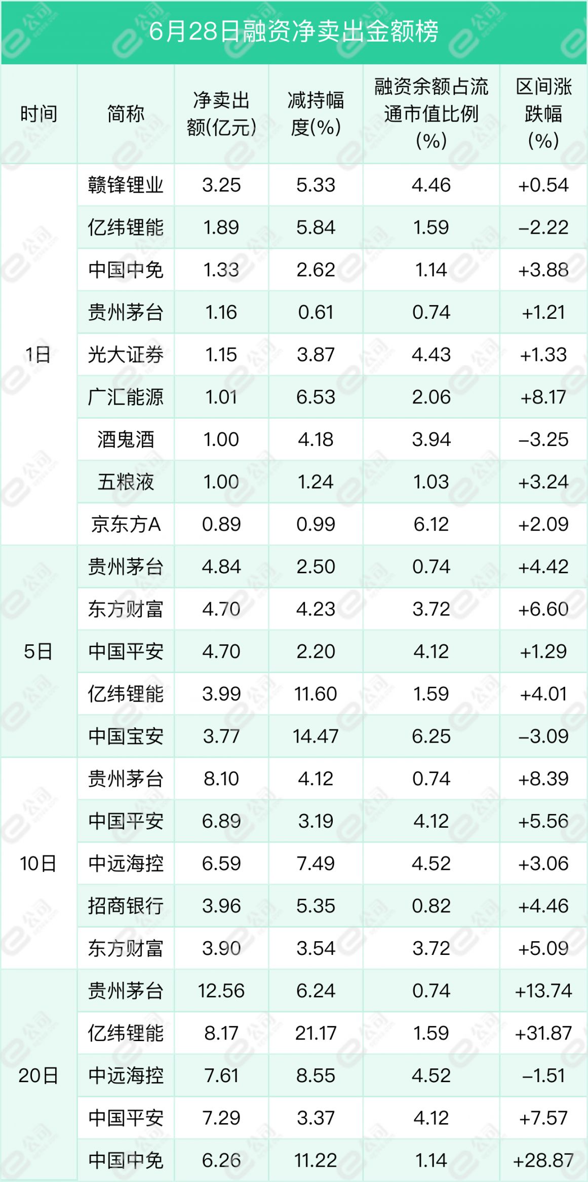 赣锋锂业、亿纬锂能、中国中免遭融资净卖出金额居前,分别为3.25亿元、1.89亿元、1.33亿元,减持幅度分别为5.33%、5.84%、2.62%。