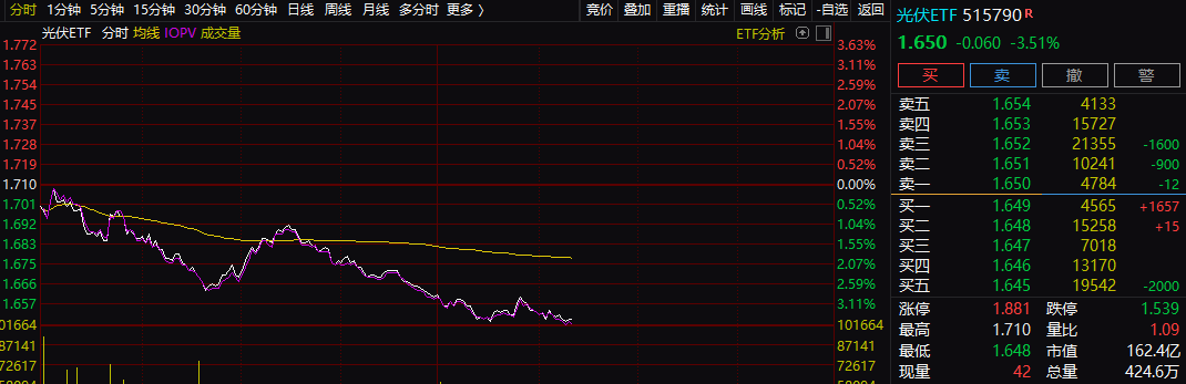 需要注意的是,太阳能板块出现在非常大的调整。在这个“买新能源,就是买未来”的时代,这个板块的人气应该非常高才对。但光伏指数的表现是这样的。