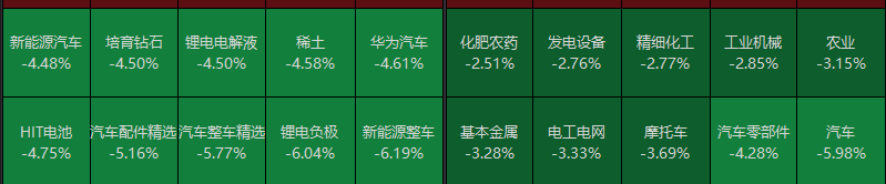 A股市场此前反弹之主线,今天全线杀跌。前期走势强劲的长安汽车被按死在跌停板,比亚迪、宁德时代亦出现较大跌幅。热门板块中新能源汽车、太阳能电池、汽车产业链皆出现非常大幅度的调整。