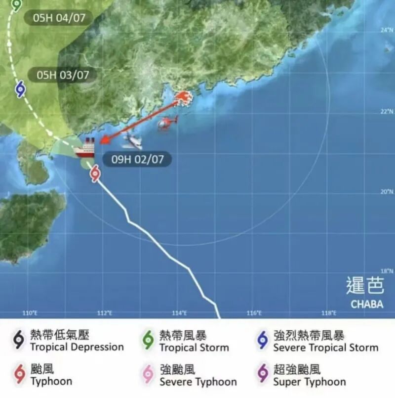交通运输部南海救助局的海洋救助船已经到达现场,但由于事发地点在台风“暹芭”中心附近,天气非常恶劣,令搜救行动变得非常困难。飞行服务队派出一架定翼机及两架直升机正在前往现场进行搜救。远程搜救行动仍在进行中。