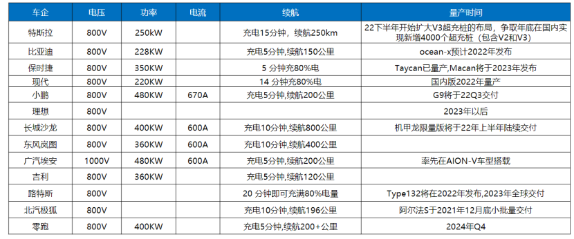 东吴证券表示,800V级高电压方案的实现,将会使充电功率突破400kW,预计会实现充电5分钟,续航200-300km,将大幅缓解充电焦虑。2019年,车企开始关注800V高电压方案,2021-2022年更多车企高端车型采用800V快充,2023-2024年将不断有新平台使用800V高电压。