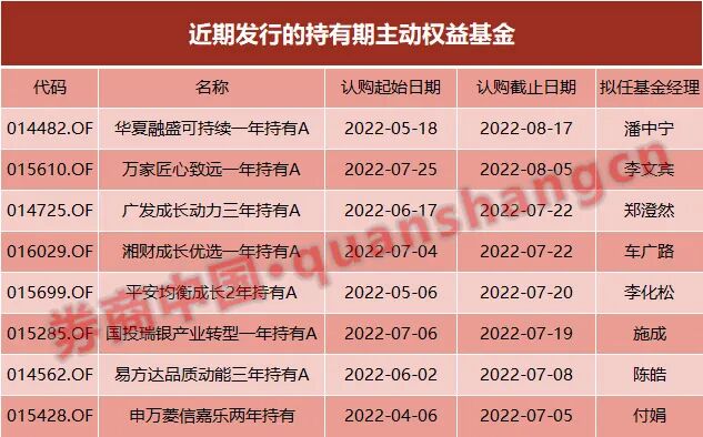 近期,也有不少知名基金经理选择发行持有期产品,如郑澄然掌管的广发成长动力三年持有A、陈皓掌管的易方达品质动能三年持有A、李化松掌管的平安均衡成长2年持有A、付娟掌管的申万菱信嘉乐两年持有均处于发行阶段,李文宾掌管的万家匠心致远一年持有A、施成掌管的国投瑞银产业转型一年持有A也将于本月开启发行。