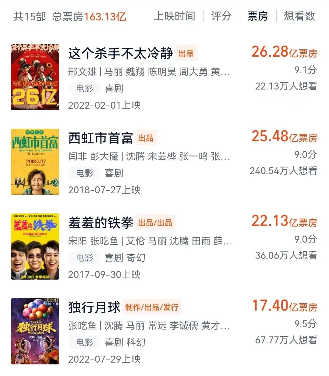 这些影片也呈现出一个显著特征,即越是开心麻花主导,票房也就越高。