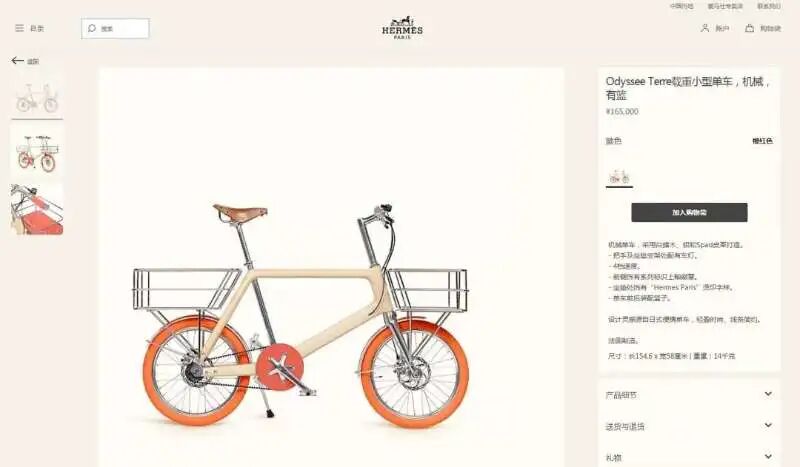 近日,爱马仕官方商城上架了一款自行车,售价16.5万元,引发热议。据悉,这款自行车已在上海门店售罄。