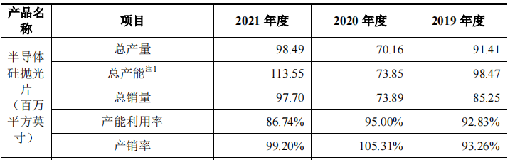 表5:半导体硅抛光片产量、产能、销量变化(单位:百万平方英寸)