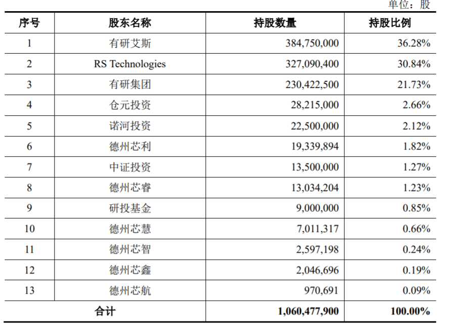 2021年5月,RS科技将其持有的山东有研艾斯19.99%股权作价约1.85亿元向有研硅增资,有研硅取代RS科技成为山东有研艾斯新股东。目前,有研集团、有研硅各自持有山东有研艾斯19.99%股权,德州汇达持股60.02%。