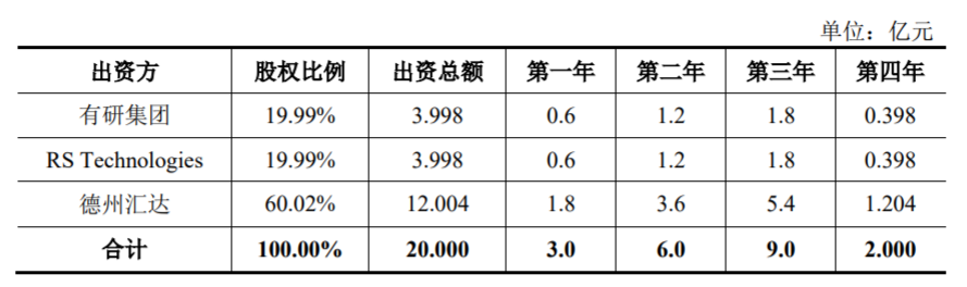 入股山东有研半导体,山东德州国资出资3亿元,山东有研艾斯一期工程若建设顺利,德州国资按照持股将注资12亿元,累计投资15亿元,超过RS科技在有研硅上的总出资金额。