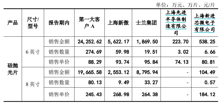 表8:有研硅主要客户销售金额和单价变化