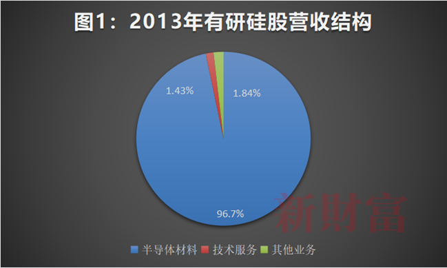 2013年,有研硅股总资产14.5亿元,总营收4.9亿元,其中,半导体材料营收4.74亿元,占比近97%(图1)。
