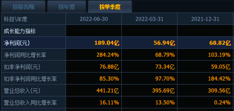 作为拥有海外大型煤矿资产的上市煤企,兖矿能源业绩在上半年实现爆发式增长。其半年报显示,报告期内公司实现营收1002.85亿元,同比增长53.39%;实现归母净利润180.37亿元,同比增长198.54%。其中,公司第二季度单季就实现归母净利润113.60亿元,环比增长70%。