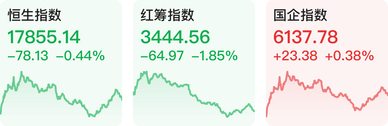 恒生指数收跌0.44%,恒生科技指数涨1.61%。新能源汽车股涨幅居前,小鹏汽车涨超8%,理想汽车涨逾4%。资源股下跌,紫金矿业大跌近9%。