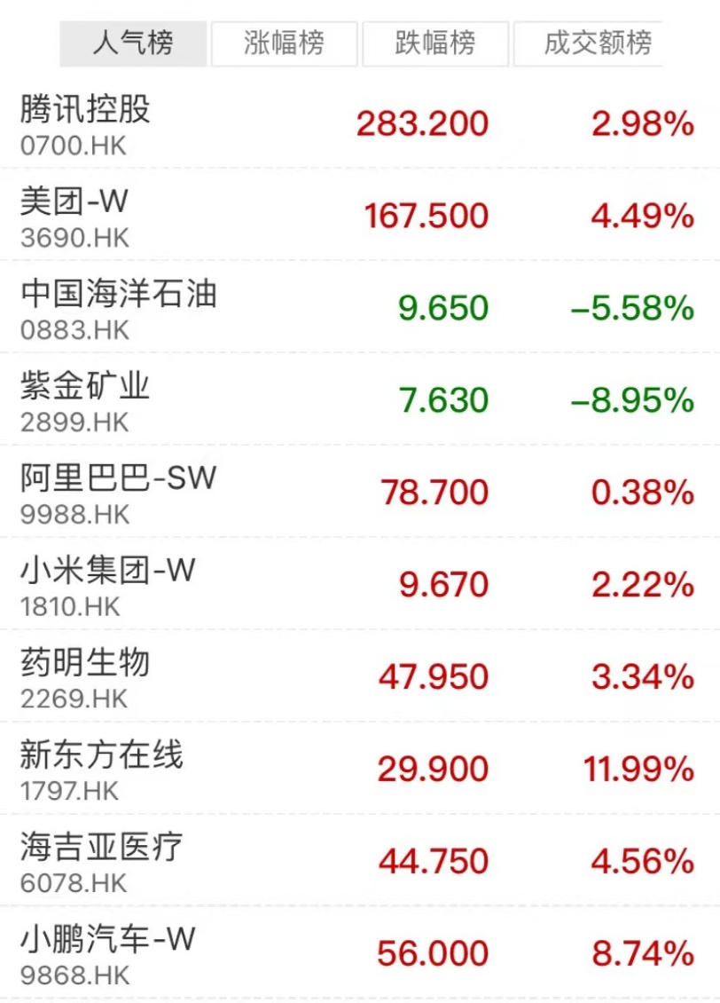 另一方面,大型科技股走强,美团涨超4%,腾讯近3%,京东涨超2%,阿里微涨;博彩股上扬,金沙中国大涨近16%;汽车股走势较佳,创始人何小鹏增持,小鹏汽车涨近9%。