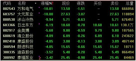 大元泵业等跌停