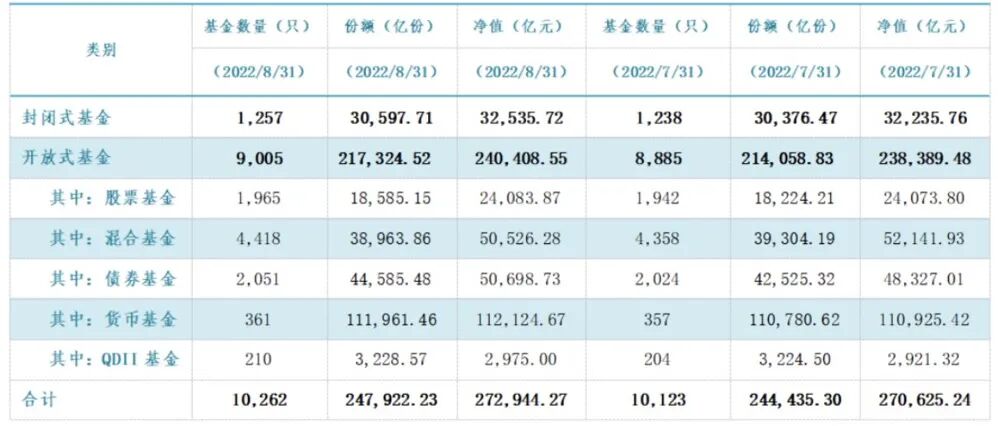 9月30日午间,中国证券投资基金业协会发布最新公募基金市场数据,截至2022年8月末,公募基金管理总规模为27.29万亿元,环比上月继续出现增长,并再创历史新高。