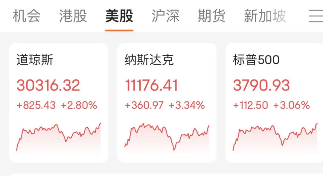 最新交易日的市场情绪延续了乐观表现。美东时间周二,美股三大指数集体收高。截至收盘,道指涨2.80%、重返30000点大关,纳指涨3.34%,标普500指数涨3.06%,该指数创近两年半最大两日涨幅。