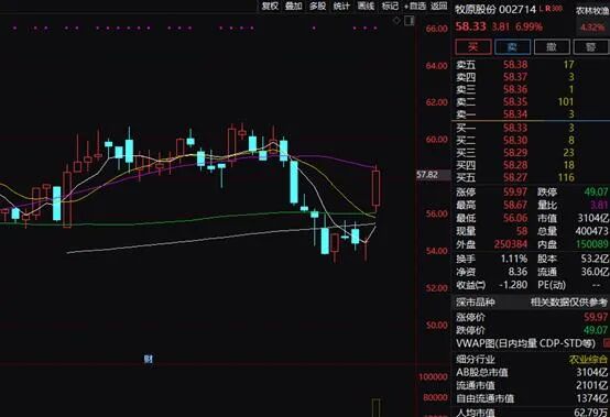 猪肉和鸡肉概念股上午大涨。仙坛股份、益生股份、民和股份盘中涨停,养猪龙头牧原股份盘中大涨逾7%。