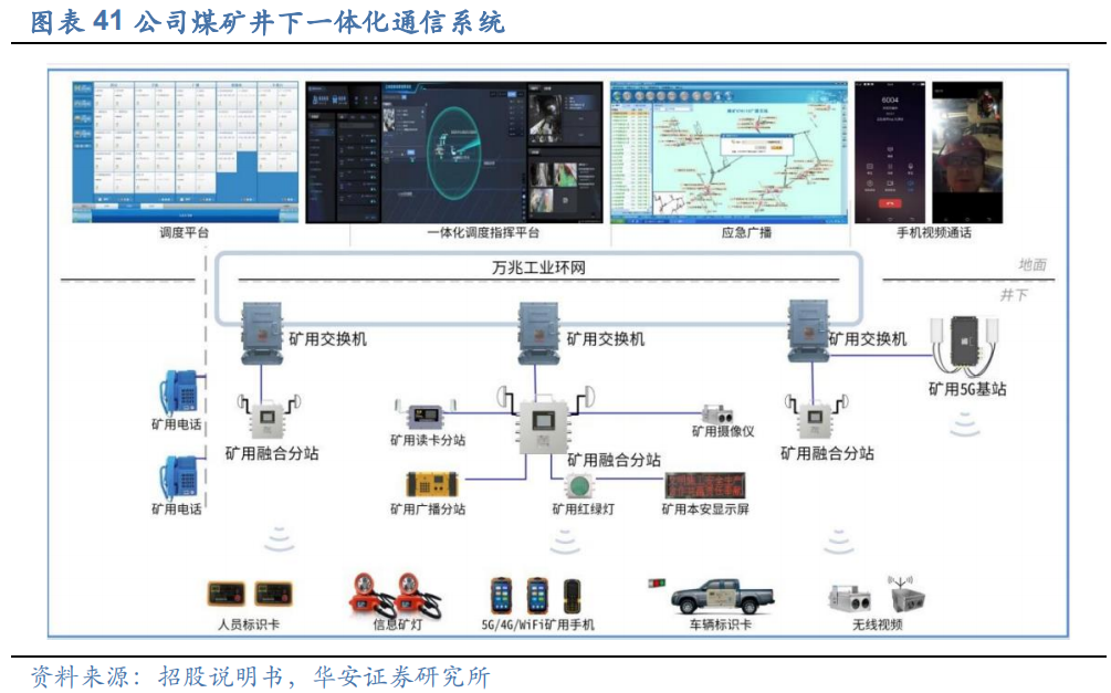 公司主要的智能矿山信息系统软硬件基本为自主研发。多协议融合通信技术行业领先,多融合与兼容性好等特点助力客户降低建设成本。以公司煤矿井下一体化通信系统为例,根据公司招股说明书的披露,该系统的总投资约为1100万元,能够帮助客户节省建设成本超60%,且该系统通过集中布线、集中供电等方式有效简化了系统结构及运维成本。