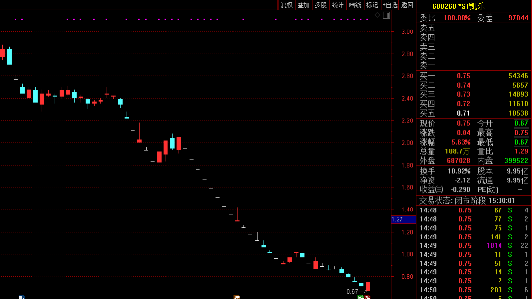 市场分析人士向证券时报·e公司记者指出,考虑到公司控股股东深陷债务危机与诉讼泥潭,“自身难保”客观上已无力“救市”,*ST凯乐退市已是“板上钉钉”。