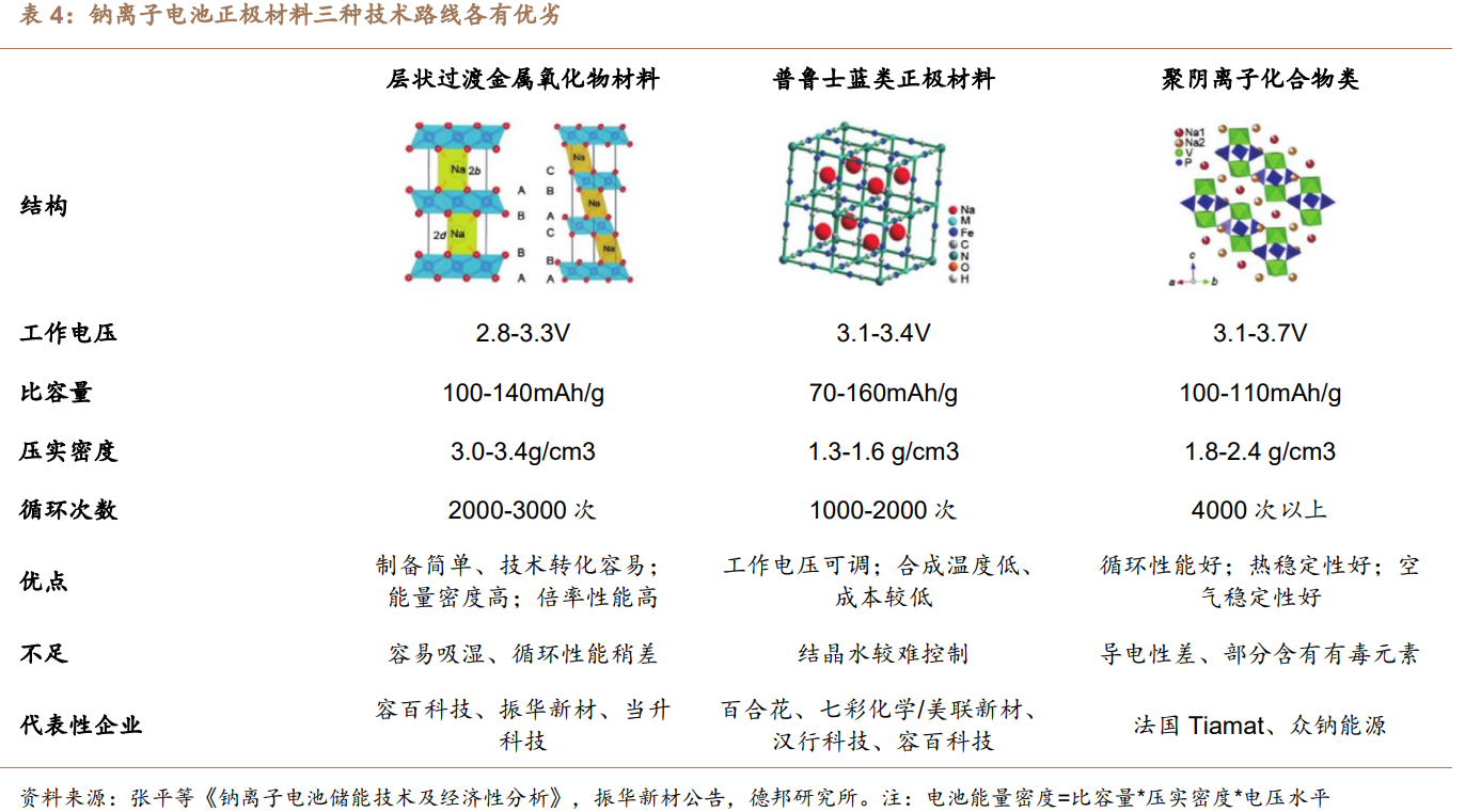 钠离子电池正极材料三种技术路线各有优劣,目前钠离子电池正极材料的主要技术路线包括:层状过渡金属氧化物类、普鲁士蓝类似物类、聚阴离子化合物类。1)层状氧化物正极材料布局厂商较多、进展快,竞争较为激烈。2)普鲁士蓝正极材料,百合花等化工企业有技术先发优势。3)聚阴离子化合物类正极材料,未来发展尚不明朗。针对普鲁士蓝路线,市场担忧的结晶水问题在实验室层面已有解决方案,安全性问题也无须多虑。公司的普鲁士蓝(白)材料目前处于实验室小试阶段,15,000 吨量产线预计于2024 年建成投产。