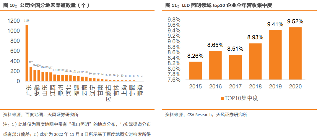 传统照明方面,据CSAResearch,21年我国家用照明市场规模约3079亿元,总产值高达6552亿元,近年来规模企稳。我国通用照明行业集中度较低,公司作为龙头企业有望进一步提升份额;新兴照明方面,2020年我国新兴照明市场规模共计为499亿元,2020-2025CAGR可达30%。公司布局智慧照明、海洋照明、植物照明、5G智慧灯杆等领域,后续有望为公司贡献新增量。