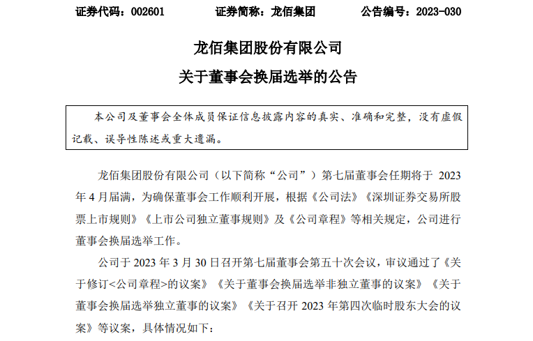 30日晚间龙佰集团公告显示,第七届董事会任期将于2023年4月届满。许刚由于年龄原因及考虑到公司已建立了一套完整的管理体系和文化体系,在任期届满后不再担任公司董事。