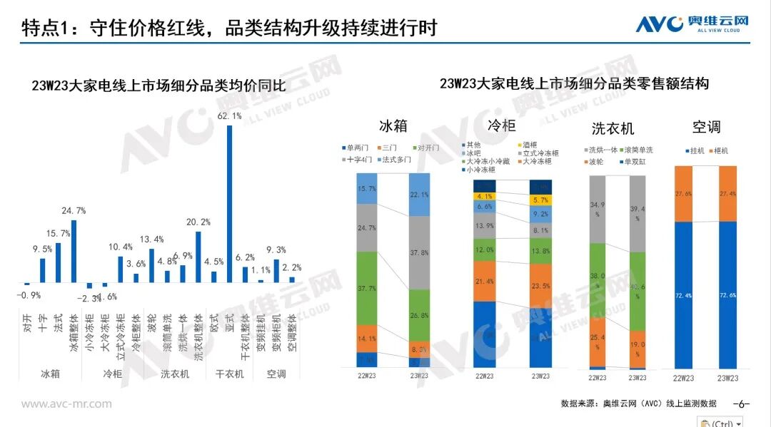 家电消费复苏的同时,行业竞争已经不再主打价格战。家电品类本身利润不高,当前主打高端化、家居化,结构升级成为产业价格回温的核心驱动力。奥维云网数据显示,618预售期间家电细分品类的均价基本保持了增长。其中,空调产品均价稳定,干衣机均价上升最高。