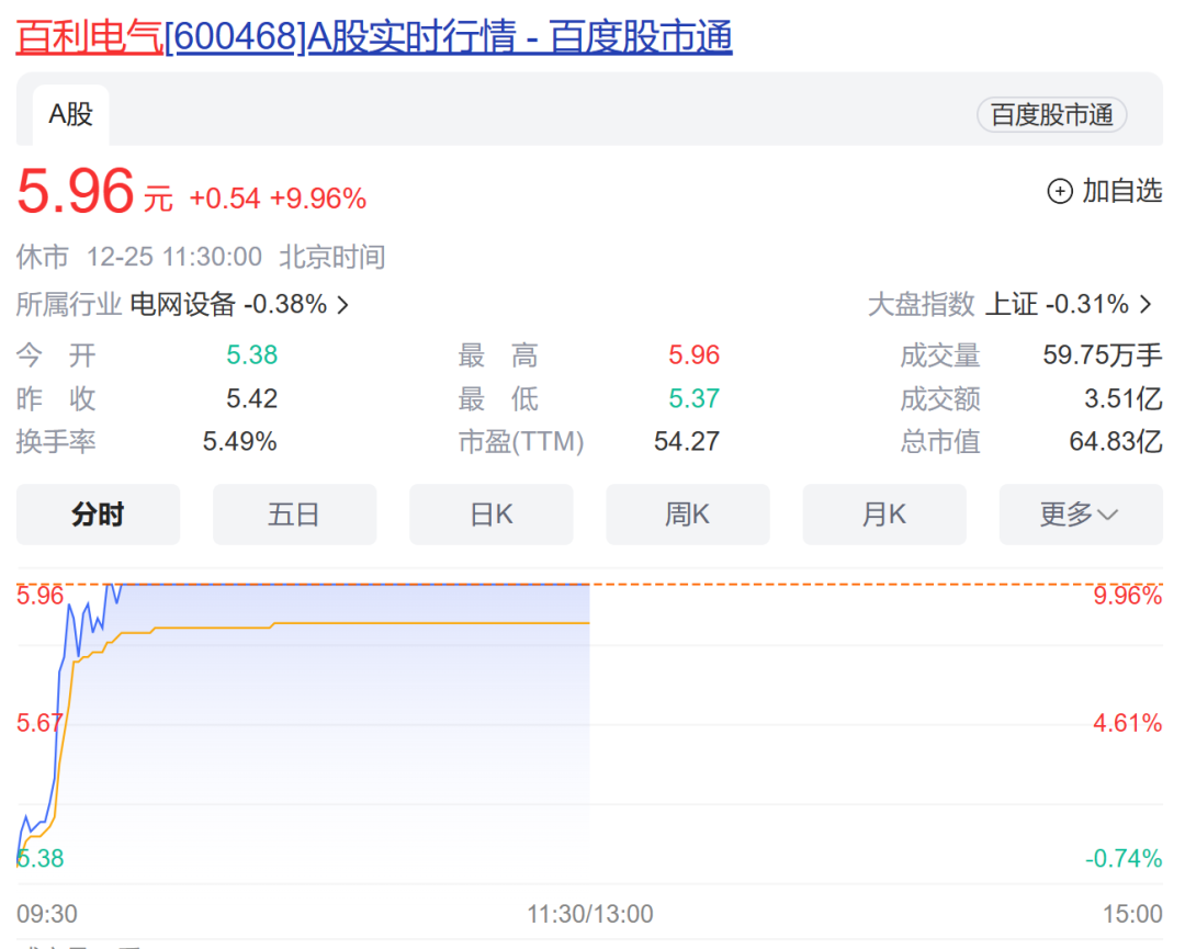 超导概念早间放量拉升,板块指数一度涨近3%。百利电气略低开后直线上冲,不到20分钟涨停,半日成交超前一交易日全天成交;辰光医疗盘中最高涨逾15%,创历史新高;国缆检测、西部材料等涨幅居前。