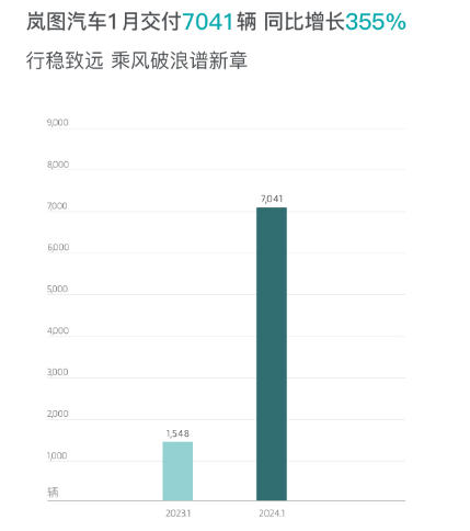 岚图汽车、理想汽车、极氪、小鹏汽车、零跑汽车、哪吒汽车等新能源车企的1月交付量均实现同比增长。