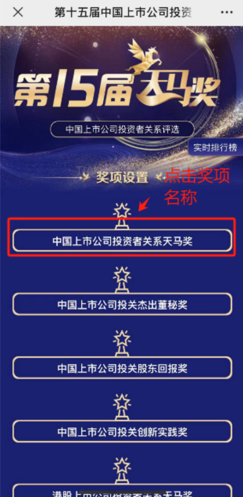 3.本次评选活动由主流财经媒体《证券时报》主办,分别设置了:中国上市公司投资者关系天马奖、中国上市公司投资者关系杰出董秘天马奖、中国上市公司投资者关系股东回报天马奖、中国上市公司投资者关系创新实践天马奖、港股上市公司投资者关系天马奖共计五大奖项;