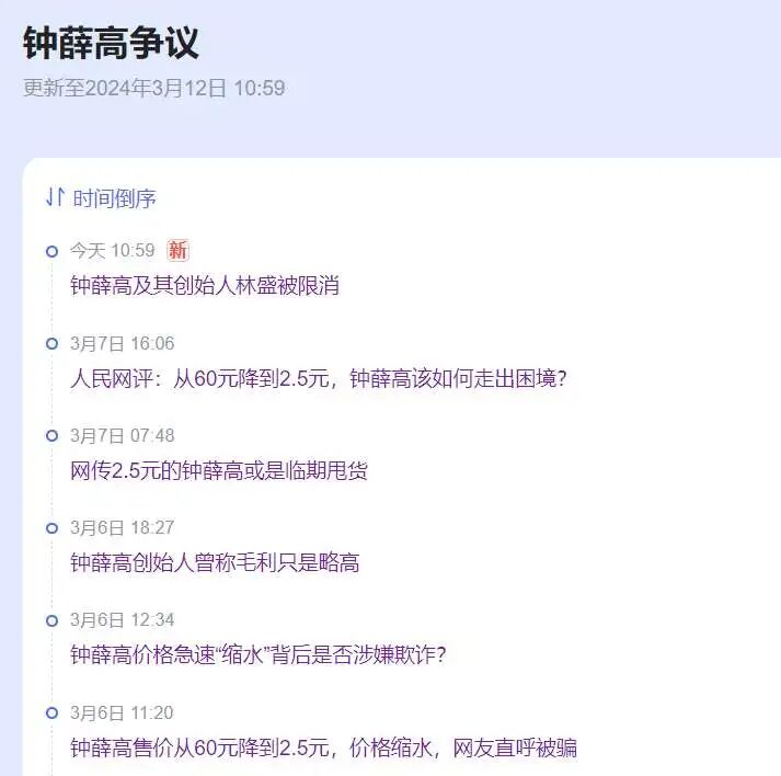 实际上,3月6日,话题“钟薛高售价从60元降到2.5元”也冲上热搜。