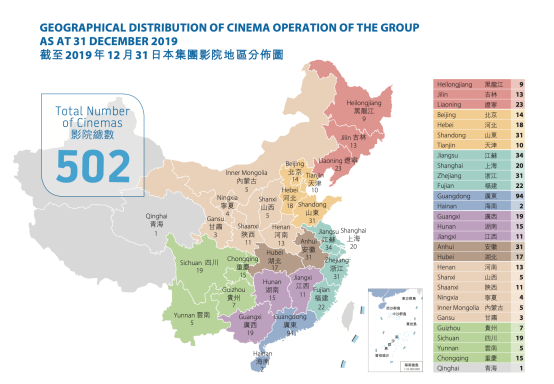 大地影院旗下共有大地影城、橙天嘉禾、自由人、中瑞等多个子品牌影院。大地影院母公司南海控股年报显示,大地影院门店高峰出现在2019年。截至2019年年底,公司共有502家门店,分布在全国29个省份。