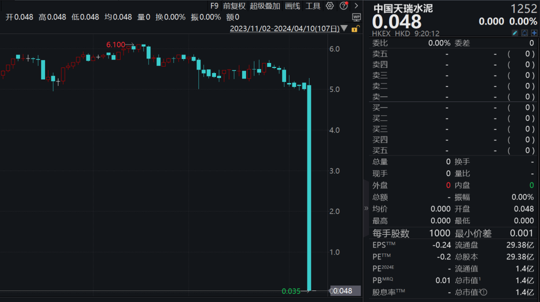 值得注意的是,除浩森金融科技之外,4月9日股价暴跌的港股上市公司还有中国天瑞水泥(1252.HK)、升能集团(2459.HK),分别收跌99%、49.89%。