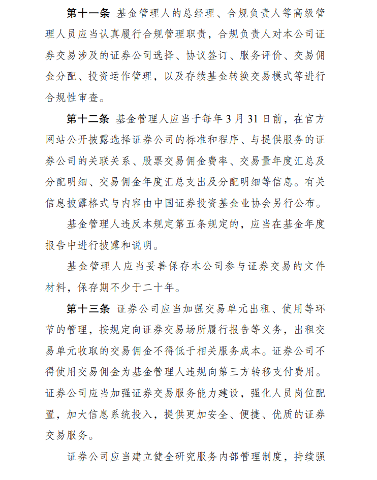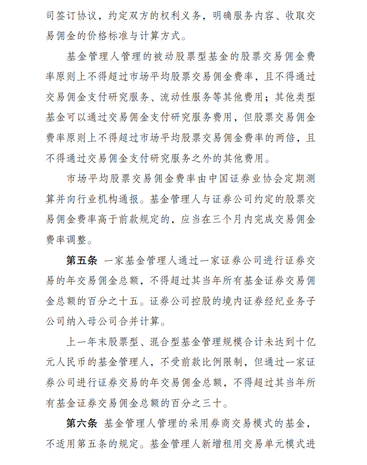 二是降低基金管理人证券交易佣金分配比例上限;