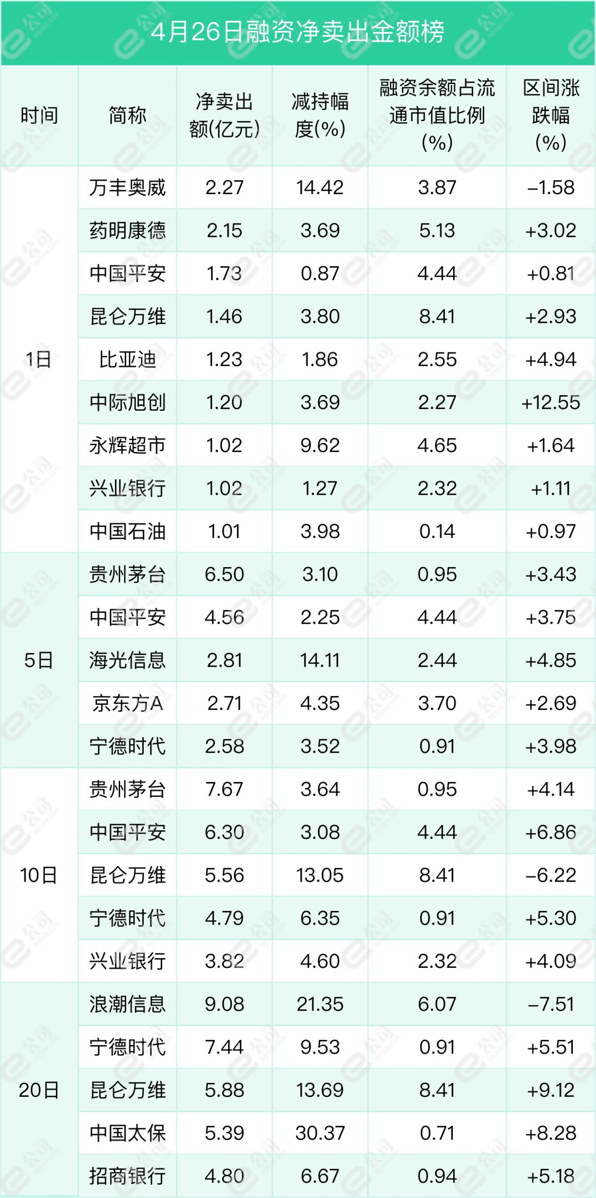 万丰奥威、药明康德、中国平安遭融资净卖出金额居前,分别为2.27亿元、2.15亿元、1.73亿元,减持幅度分别为14.42%、3.69%、0.87%。